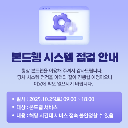 º»µåÀ¥ ½Ã½ºÅÛ Á¡°Ë ¾È³»(2025.10.25 09:00~18:00)
